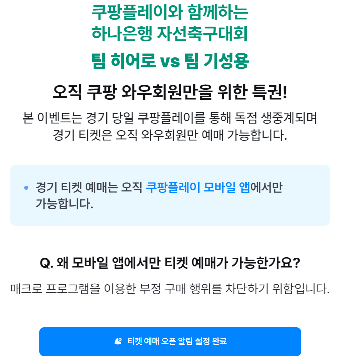 하나은행 자선축구대회는 쿠팡플레이 에서 독점 생중계 예정입니다.